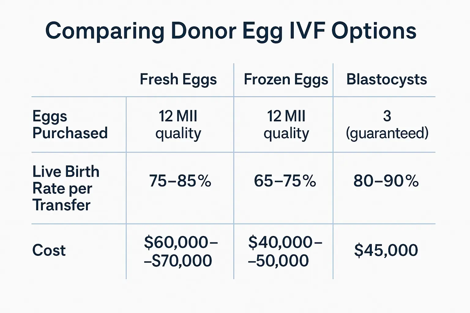 Transparent costs and flexible options for both fresh and frozen eggs.
